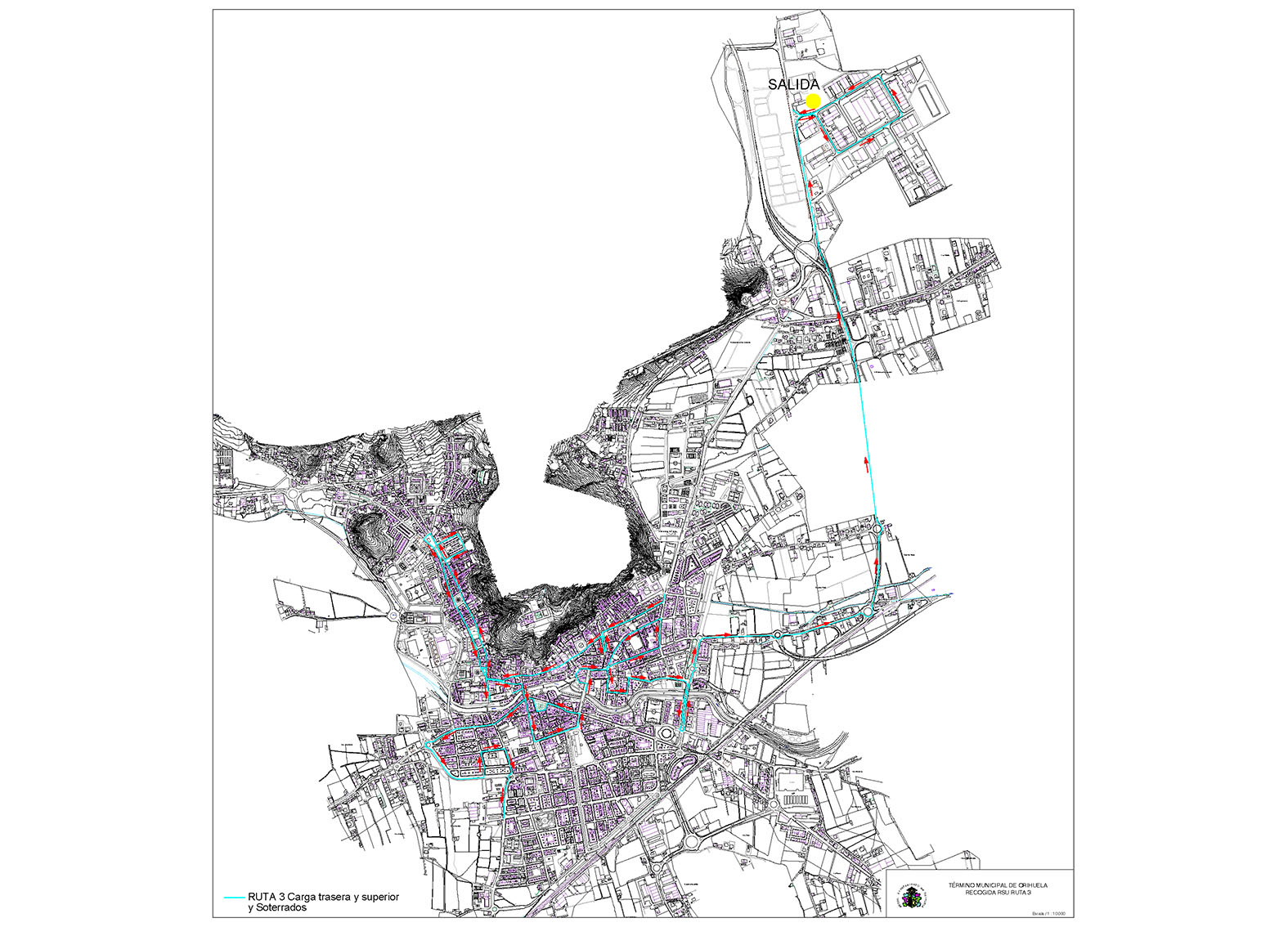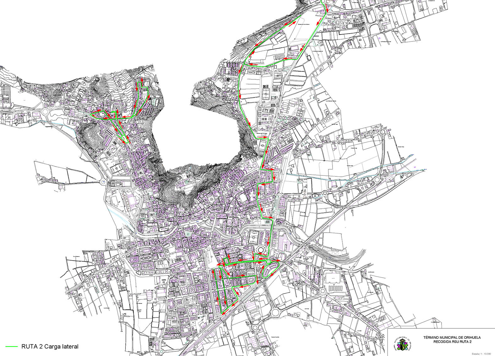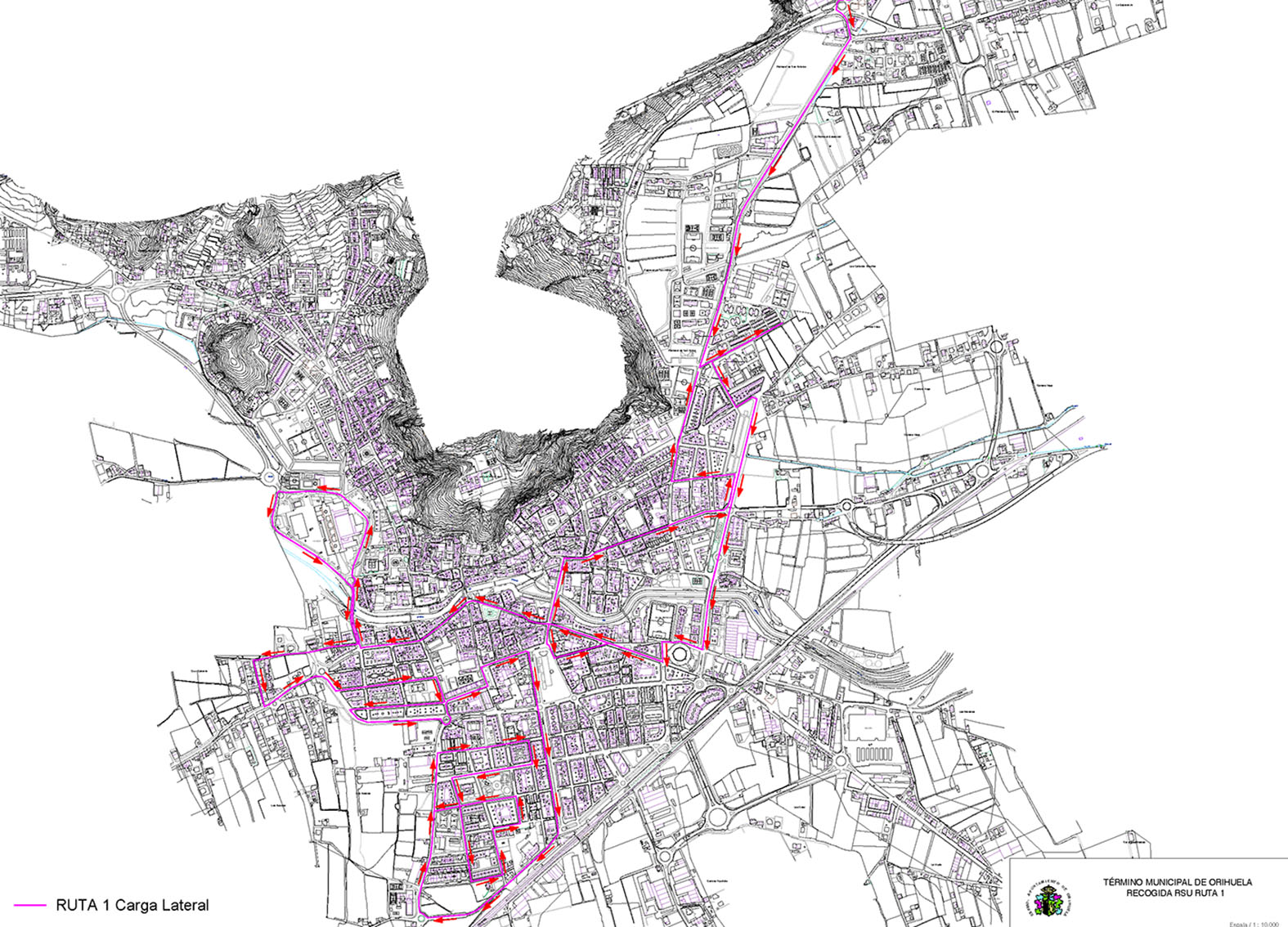 El casco está dividido en tres rutas de recogida de basura, dos de recogida de contenedores de carga lateral y una de carga trasera y soterrados.
